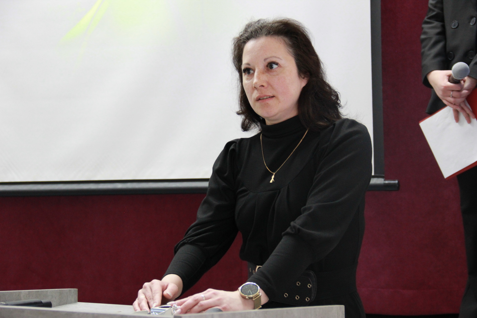 Также перед собравшимися выступила Ирина Геннадьевна Покровская, специалист по дополнительному профессиональному образованию. Она рассказала о перспективах, которые открывает система ДПО: возможность углублённо изучать профильные дисциплины, получать профессию ещё во время учёбы в вузе и, как результат, иметь на руках несколько дипломов сразу после выпуска. Это преимущество, подчеркнула Ирина Геннадьевна, делает выпускников филиала особенно конкурентоспособными.